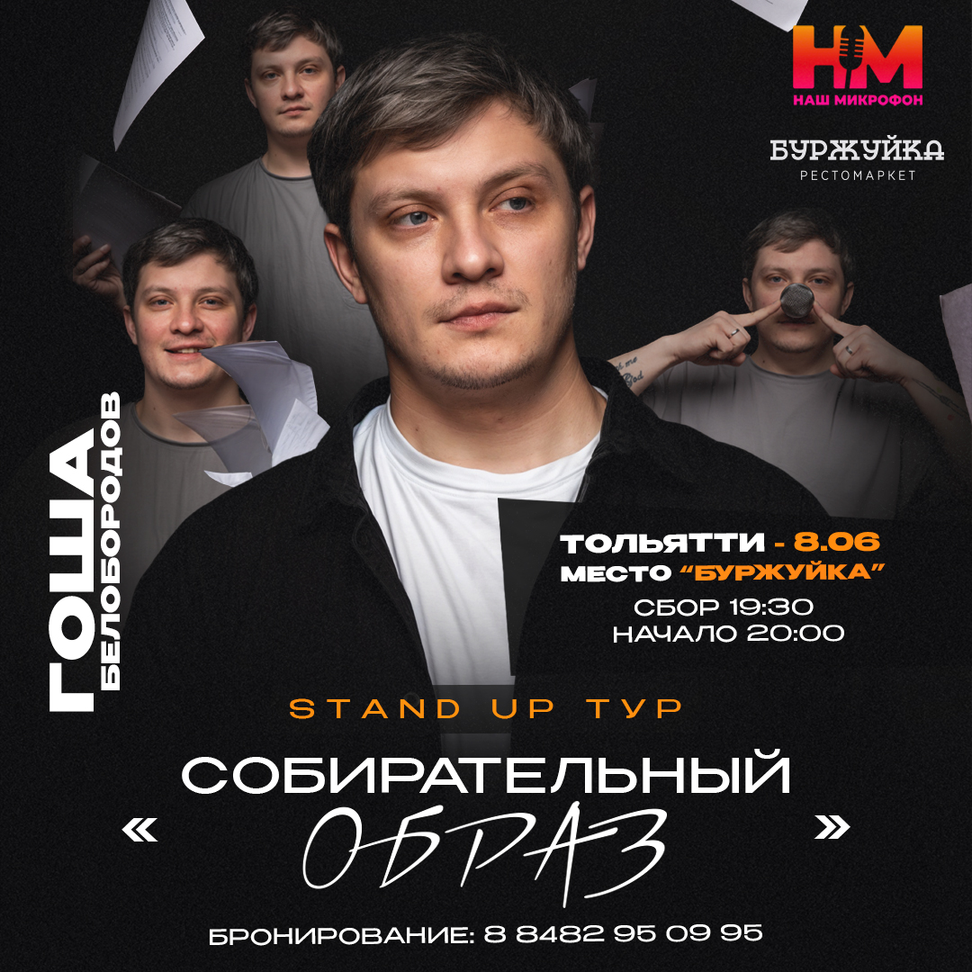 Гоша Белобородов - cтендап-комик, резидент бара "Stand Up Патрики, участник "Comedy Battle", автор шоу "Взрослые люди" и "Тема". Комедийный автор, шоуранер и сценарист компании "Gen Production". Один из самых опытных комиков на сегодняшней сцене.